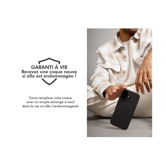 Force Case remplace votre coque avec un simple échange à neuf dans le cas où elle s'endommagerait. Pour bénéficier de la garantie à vie, il vous suffit de créer un compte en quelques clics et d'enregistrer votre produit sur le site https://force-mobility.fr/fr/utiliser-garantie, dans les 30 jours suivant votre achat, muni de votre justificatif. Le service Force vous fait parvenir un produit neuf en échange de votre produit défectueux ou cassé. Une fois par an et sans limite de durée pour que votre smartphone reste toujours parfaitement protégé.