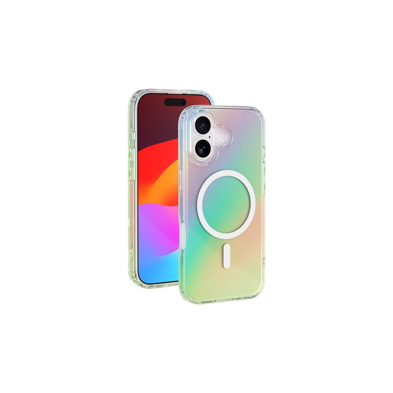 Compatible avec tous les accessoires MagSafe, elle garantit une recharge sans fil rapide et un maintien parfait. Son effet holographique tendance offre un look moderne, tandis que le traitement anti-jaunissement assure une durabilité prolongée.